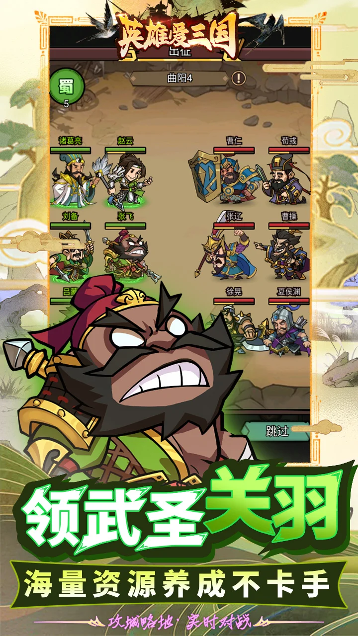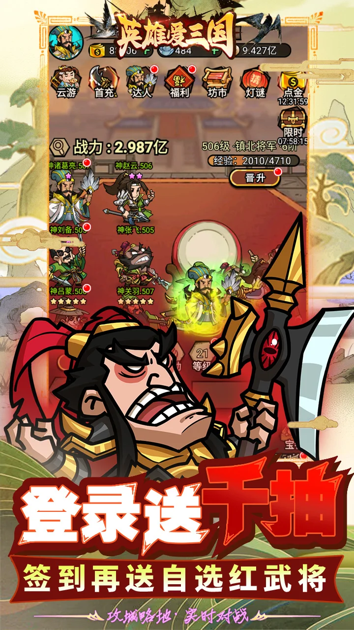 《英雄爱三国》是一款以三国历史为背景的策略类开箱子手游,融合了角色养成、卡牌收集、策略战斗与放置玩法,丰富的游戏内容和创新的系统设计。玩家将扮演三国时期的领主、军师或军阀,通过招募名将、发展城池、组建军团,逐步扩张势力,最终实现统一天下的目标。