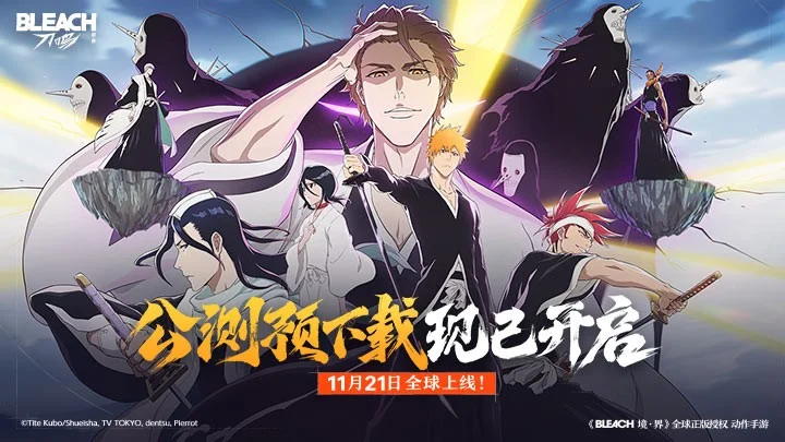 朝夕光年自主研发,《BLEACH境·界》全球正版授权动作手 游《境·界刀鸣》,11月21日全球上线!沉浸剧情体验,再 现《BLEACH境·界》的热血与浪漫;独创拼刀对决,以指尖唤醒记解绽放;极速攻防操作,胜负仅在毫厘之间;以守护之名集结,经典角色零帧切换连携作战。这一刀让你身临战场,这一次就与斩魄刀并肩!热血的世界,用刀说话!