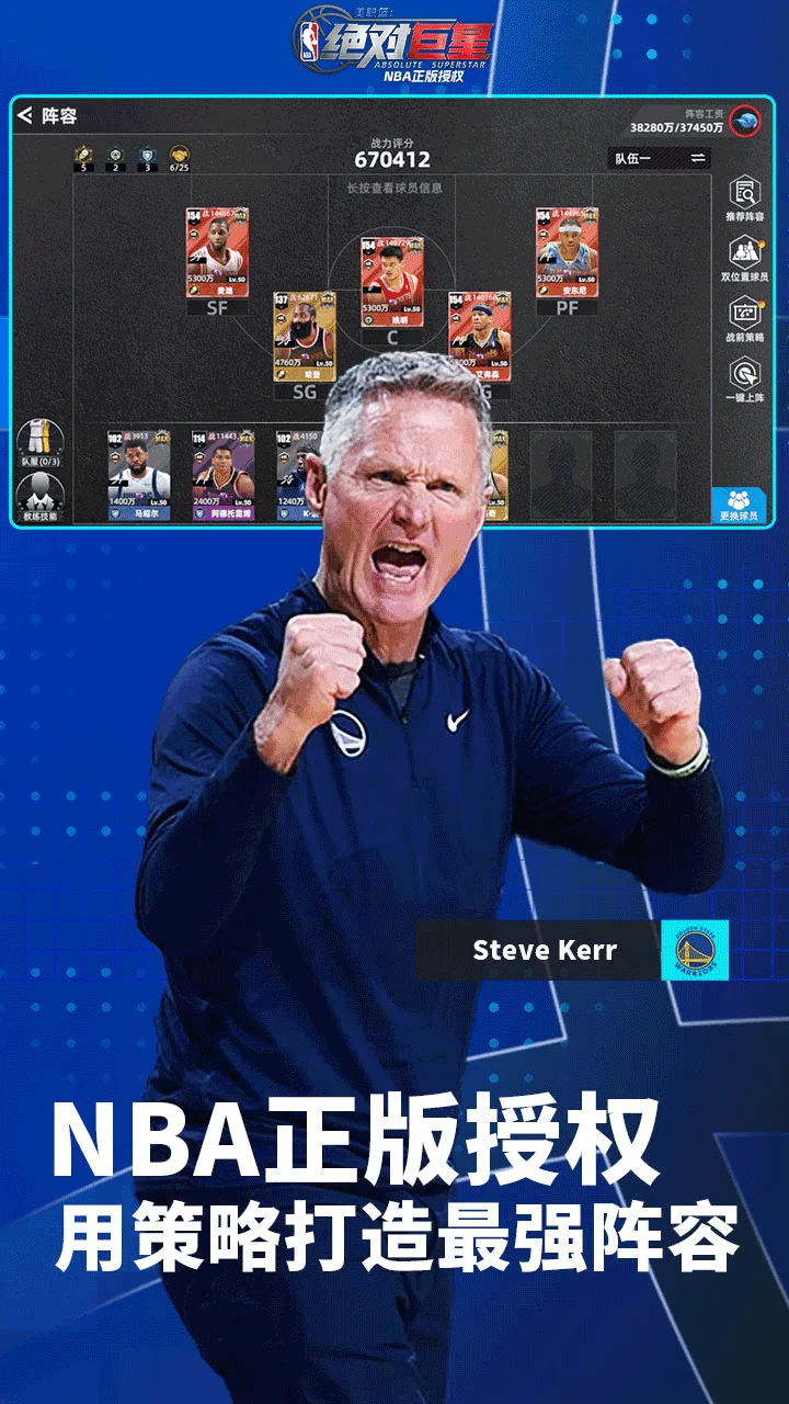 赛前组建五人阵容(包括替补球员),开始比赛后可根据球员体力更换替补,使用球员技能,根据对手打法更换战术以取得优势。