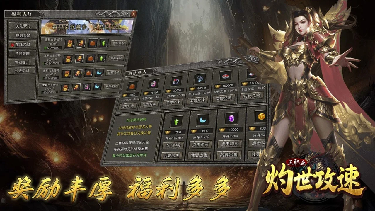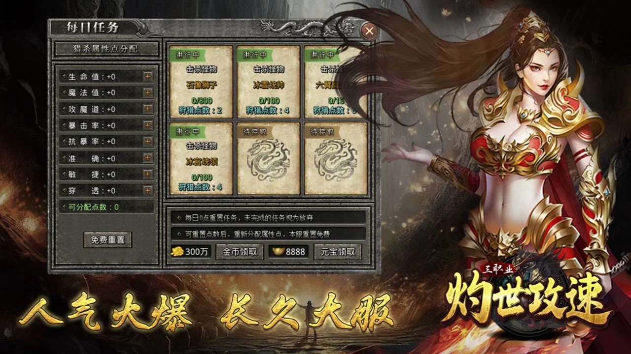 公平开局,人人追梦,流派丰富,装备为王!上干缓冲,自由搭配,专属神器战士:攻速流、一刀流、吸血流、控制流!法师:消耗流、爆发流、减速流、灼烧流!道士:保命流、辅 助流、输出流、召唤流!各大流派专属好爆,搭配合理即挑战大佬!游戏简介全新三职业满屏加特林版本,免费转职!免费变性!突突突突突一时爽,一直突突突突突一直爽!上线 就送自动回收!范围拾取!
