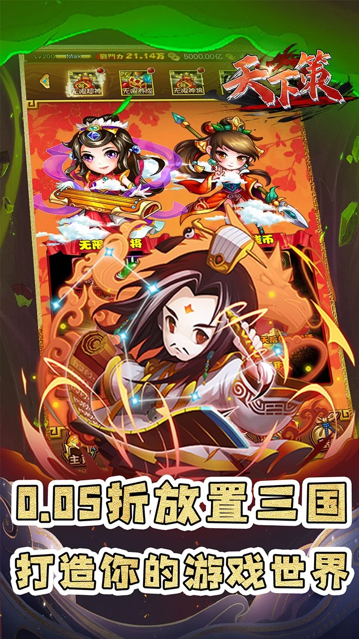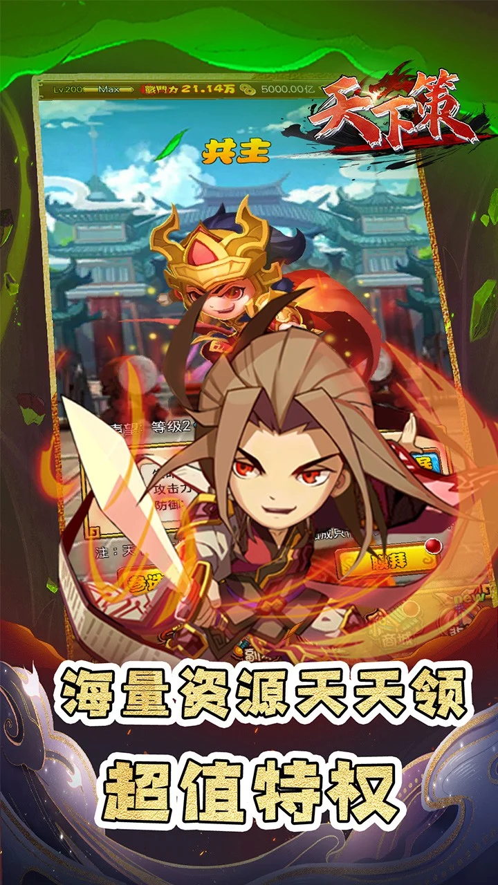 游戏融合卡牌养成与策略对战玩法,从武将培养到副本挑战、跨服竞技,多元模式满足策略体验。福利体系同步加持:上线即赠强力神将,海量卡牌随进度解锁,助你快速构建核心阵容,在萌系三国世界中开启策略征战之旅。