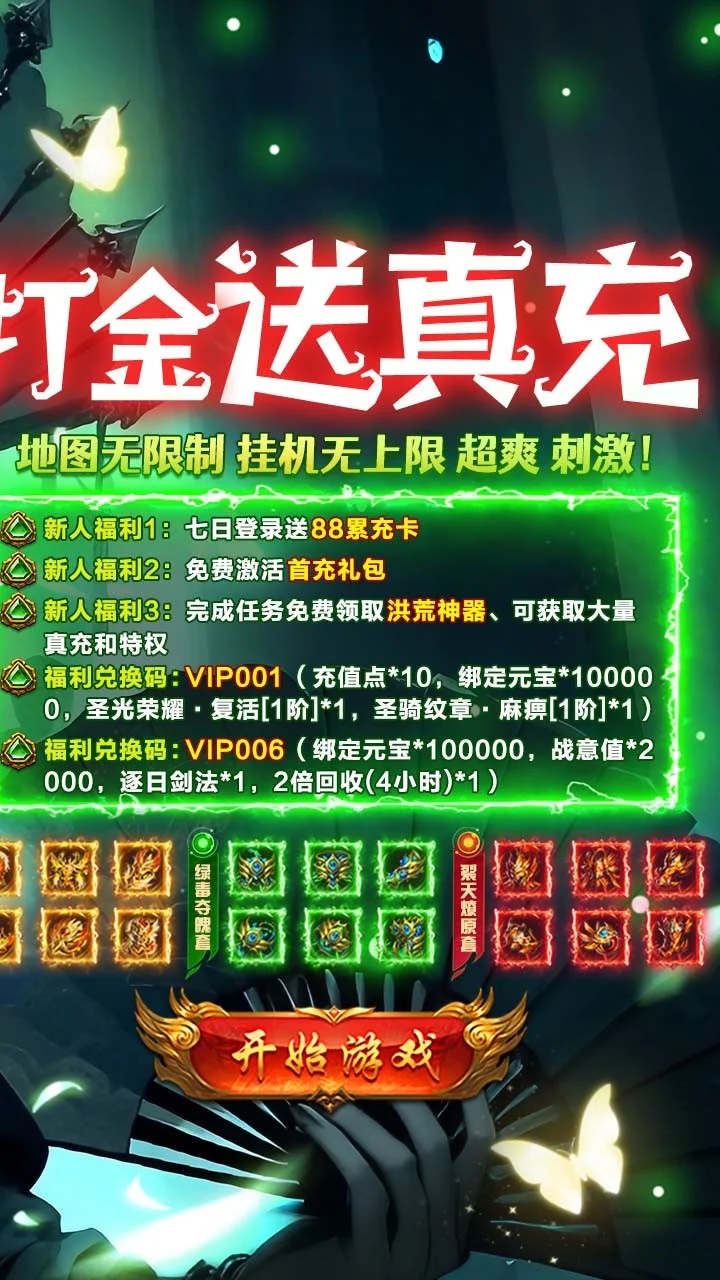 内置三折充值系统,游戏特色是可通过打怪掉落的实物兑换充值点,使用充值点可获取灵符和线上累充/冠名,创角送自动回收/拾取和会员卡、10万元宝,天天赠送200元货币;完成每日任务可获取大量实物和元宝奖励,七天每日登录还送88累充卡使用后直接免费领取首充奖励/线上累充,传奇画质精美,福利满满;线上更有多种不同的活动供你获取资源;还有跨服玩法;0氪也能变大佬。