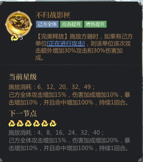 注:战法搭配仅供参考~此套搭配主角负责上减防buff,搭配回怒战策,多次释放怒技;转化光环弥补缺少肉盾的缺陷,提高阵容容错率。