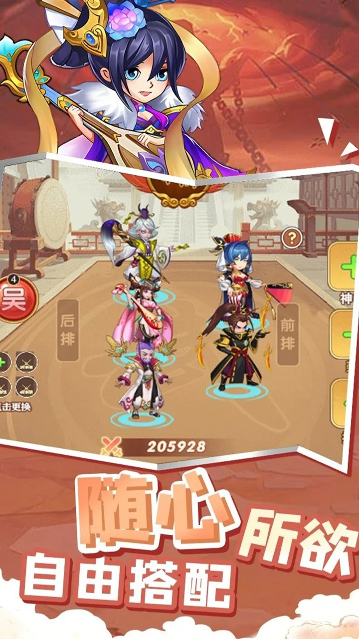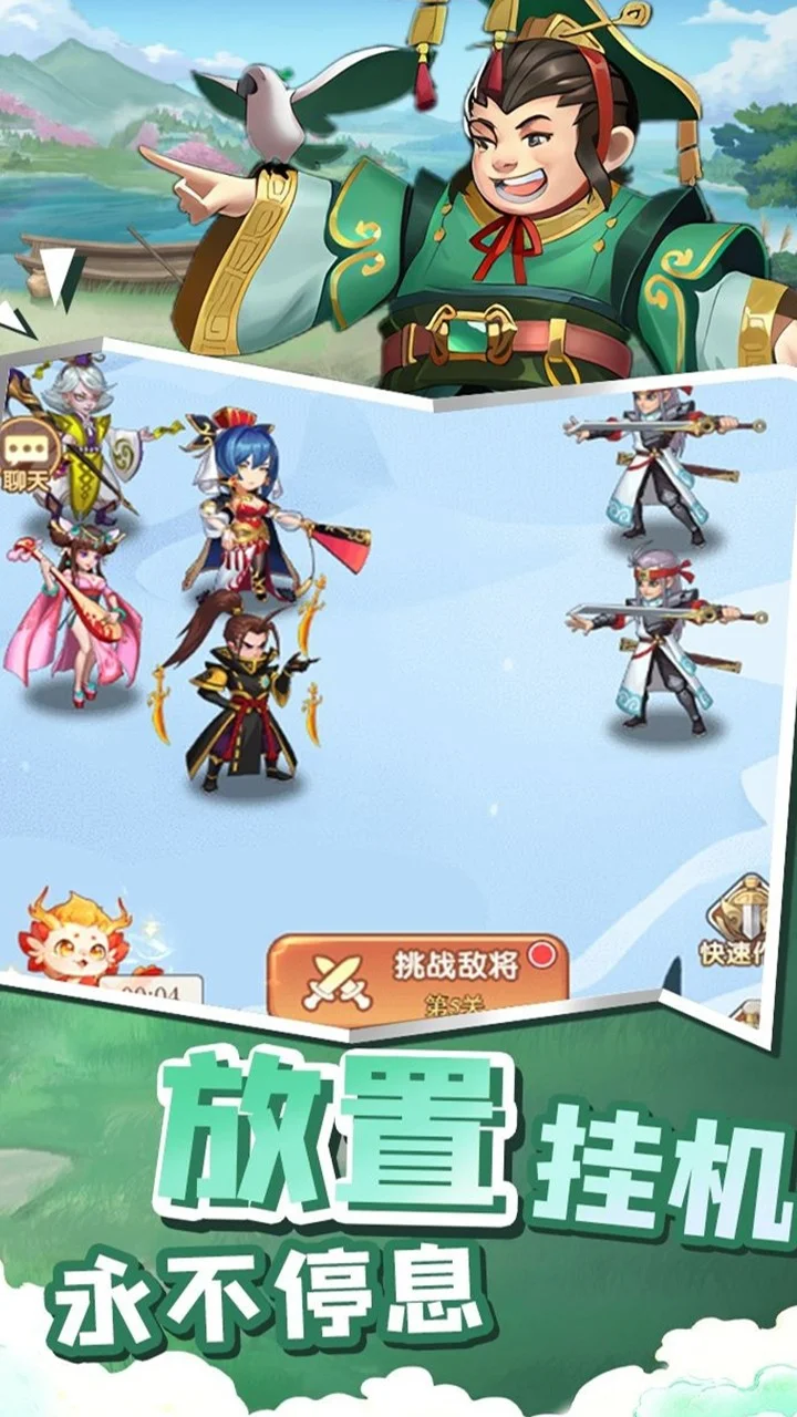 主打离线挂机收益机制,解放双手也能轻松累积资源。游戏汇聚海量三国名将,玩家可自由搭配阵容、激活羁绊,在策略布局中征战经 典战役。从武将升星、装备淬炼到宠物养成,多维成长体系满足深度培养需求,更有跨服竞技、联盟互动等玩法增添乐趣,零氪玩家也能凭策略逆袭称霸。