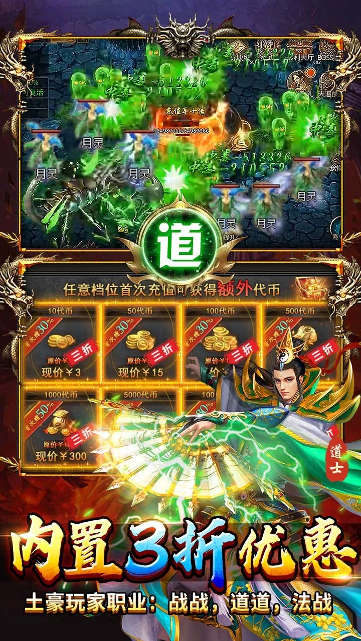 内置三折充值系统;拥有超越PC端的流畅操作,无时无刻享受着PK自由,所有的装备时装均能掉落,热血合击传奇的经典再现,快来与兄弟一起重聚热血,让你尽情体验不一样的传奇战斗;一路提升等级战力,助你登上传奇王座;续写当年未曾拥有的传奇神话,快来一起攻沙一起来战。
