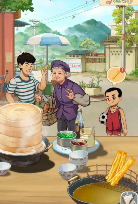 首先作为一个商业类的游戏,在这款游戏当中大家最先拥有的店铺就是一个早餐店,在这里大家可以卖豆浆,卖油条,卖包子,卖各种传统的早餐美食。甚至还有囊,韭菜饼等等传统美食,而且美食还可以不断的升级解锁。