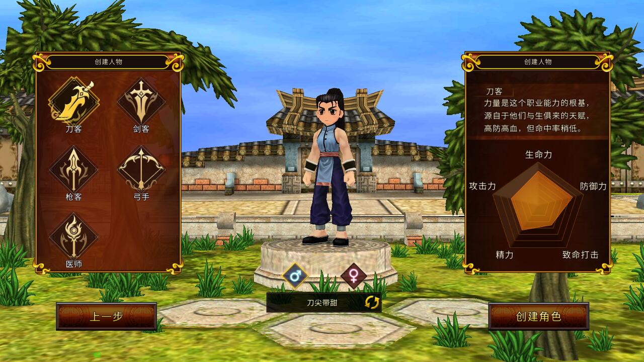 如果大侠喜欢跟其他玩家组队打怪,可以选择医师,医师能通过自身的技能给自己和队友补充状态。还有刀客、远程攻击的弓手可以选择。