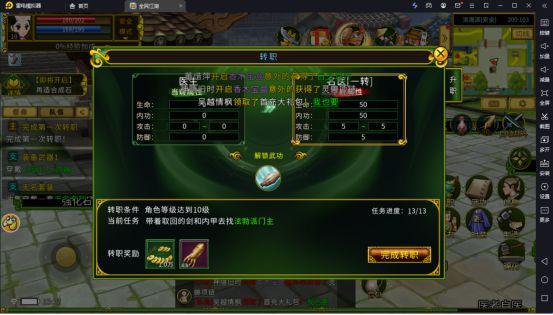 完成主线任务后就可以去提升我们的职业,进行转职,转职完成会解锁新武功,转职分为一转二转以此类推,完成主线任务可以提升转职的属性。