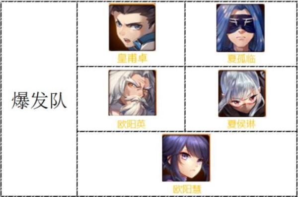 夏侯琳和夏孤临、黄埔卓、欧阳英、欧阳慧下面来简单介绍下这套阵容的每人个别技能介绍、以及获得方式: