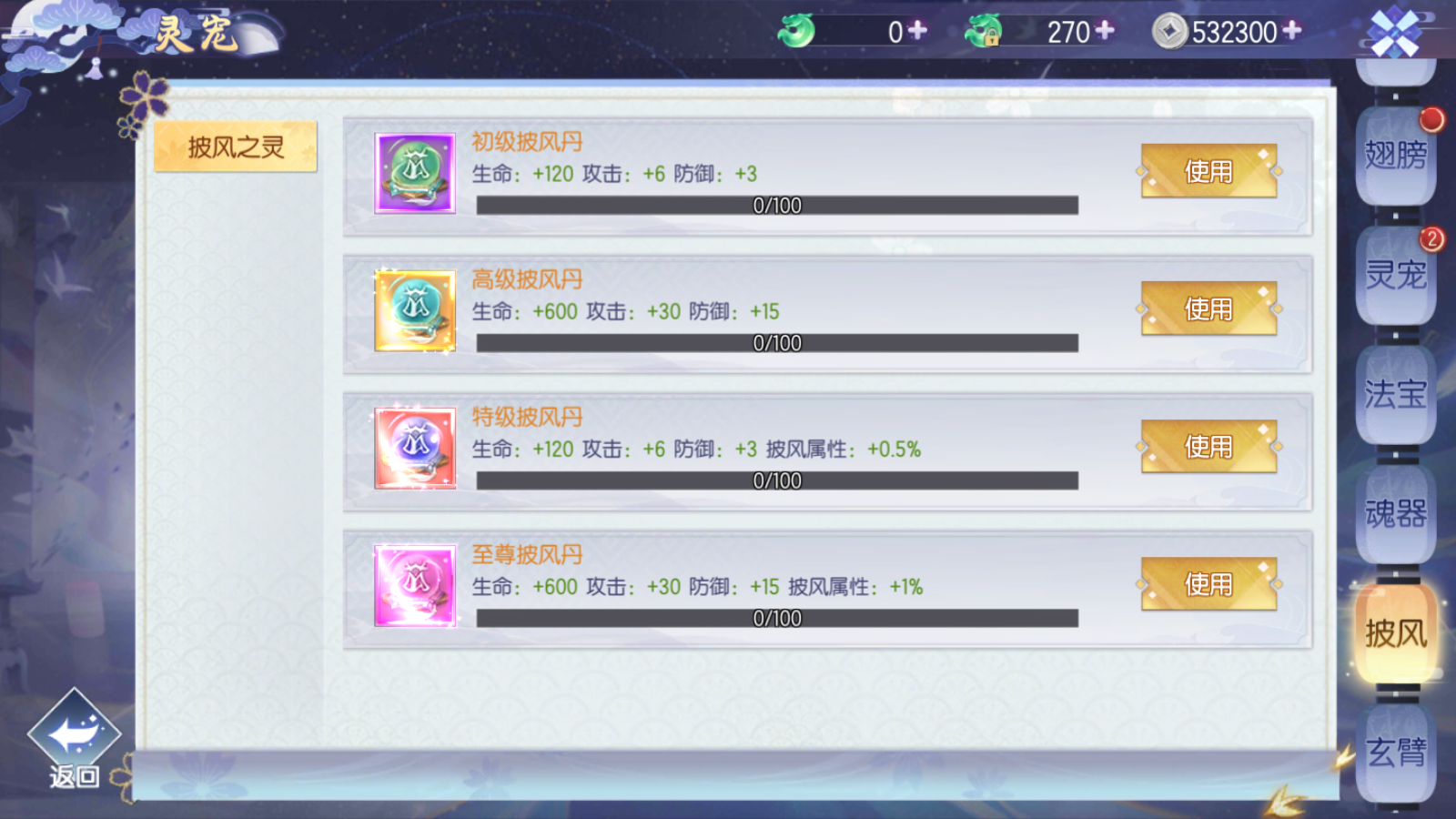 披风其实是防御类的装备,其技能也展示了它的作用——爆伤减免,不断消耗披风进阶石进行进阶吧,要记着,活着才有输出!