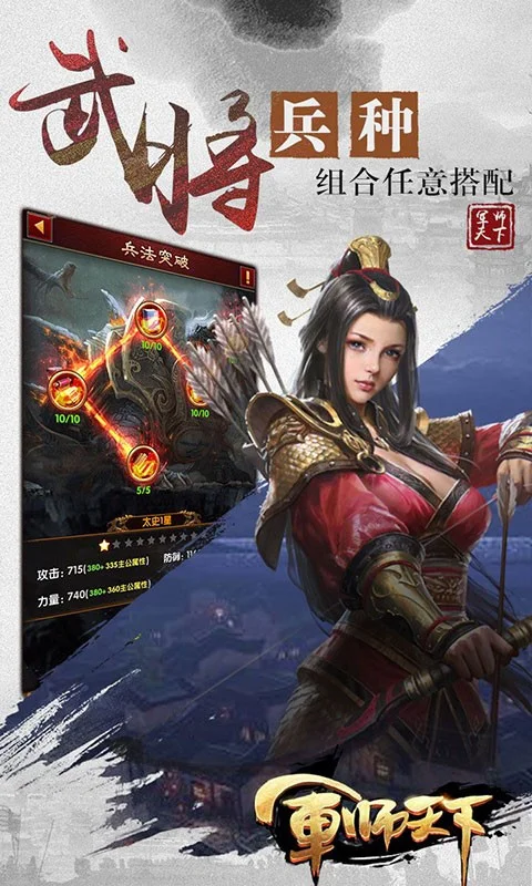 《军师天下飞升版》是一款以中国古代三国时期群雄争霸为题材的角色扮演类手机网络游戏。游戏复刻了三国魏蜀吴群雄割据,三国鼎立的全盛时期。更开辟了多组缘分、野外挑战、探险收益、公会副本等各种全新玩法,游戏变得与众不同。游戏模式上给予了玩家更多的自由,不再拘泥于传统手游随时在线的常规模式,让玩家自由的掌握游戏节奏。