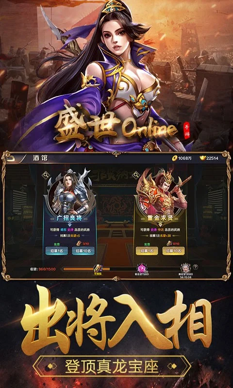 真实还原三国世界,六百城池皆可讨伐,调兵遣将,御敌千里,宣战帝国城池,带上兄弟一起痛快杀敌,成全你一统天下的帝王野心!战火已经点燃,成王之路就在脚下!进入《盛世online》,梦回三国,打造属于你的一片千秋伟业!