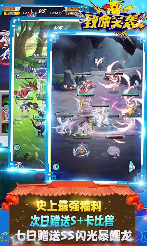 超人气手游《致命突袭(无限)》火爆来袭!新增四大精灵阿尔宙斯、钢铁超梦、原始固拉多,原始盖欧卡,新增全新跨服竞技活动--名人战,新增继承功能,精灵可以共享等级资源,全方位培养阵容。热血对战,突破本体限制,MEGA超进化Go!馆长试炼,属性克制免疫,加入全新队形策略,全屏对决一触即发,目标宠物大师! 萌宠在线捕捉,收集属于你的图鉴,探险之路不再孤单! 7天送S宠物,一起踏上冠军之路吧!