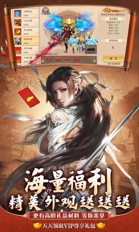 大型玄幻武侠类ARPG《飞仙诀超V版》强势来袭,更有海量限时福利放送!上线即赠满级VIP,尊享每日礼包,还赠58888绑定元宝,战力狂飙不停歇。游戏通过特色骑战、轻功、即时PK、世界首领争夺等玩法;演绎玄幻小说中的洪荒战役! 真实的玄幻世界体验,凶猛异兽降临人间,异界地图等你来探索;