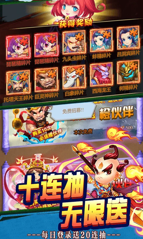 《封神大主宰》无限福利版是一款以西游为题材,招募三界仙神养成为核心玩法的RPG手游。 玩家扮演秩序重塑者,收服各路伙伴,一路斩妖除魔,修行七十二变,成为统领三界的新一代霸主。更有群仙比武,封神榜,大闹天宫,三界战场,海量仙盟玩法等你来战!全新无限福利,真实充值券、元宝、金币、十连抽券、万能碎片每日无限免费赠送!
