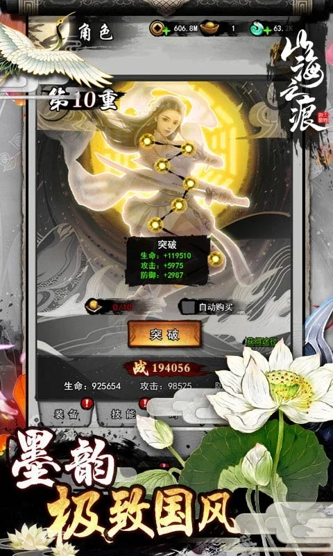 《山海之痕》是一款ARPG+养成类的h5放置游戏,以水墨国风的美术风格,搭配最新的3D引擎,搭建出美轮美奂的洪荒世界,并实现了多人同时在线即时战斗模式。更有仙门之争,宗门之战,鏖战天庭,横扫大荒等PVP与PVE玩法,带来一个与众不同的洪荒世界。