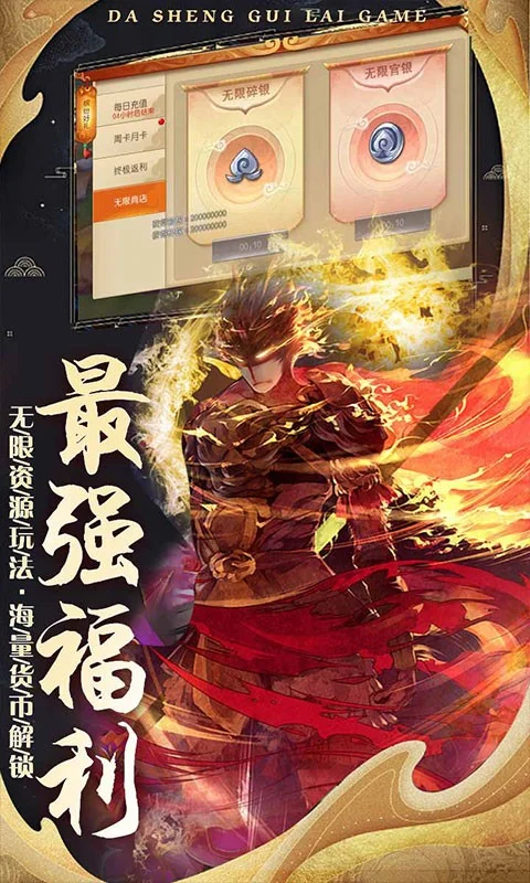 游戏剧情紧绕西游大圣归来原著展开,是一款大型3DMMOARPG手机游戏!独创上线送超级VIP+30万绑定元宝+10万官银+1000万碎银巅峰开局!VIP礼包五星神宠、橙宠书、海量强化石与宝石包免费领!天降神兵!助你战力暴涨!高度还原原著经典角色及特色场景,并加入了生动有趣的原创内容!无队友不西游,携手小伙伴们与大圣一起棒指灵宵吧!