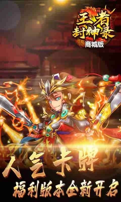 《王者封神录》是一款三国题材的卡牌RPG手游。经典的卡牌策略对战玩法,强调策略和阵容搭配;游戏内含竞技挑战,三藩战等丰富玩法,体验最最好玩的三国卡牌游戏;红色宝物,武将培养各种黑科技也将让你领略三国之魅力。上线即送百连抽,快来召集属于你的三国武将阵容,重写历史的热血体验吧!
