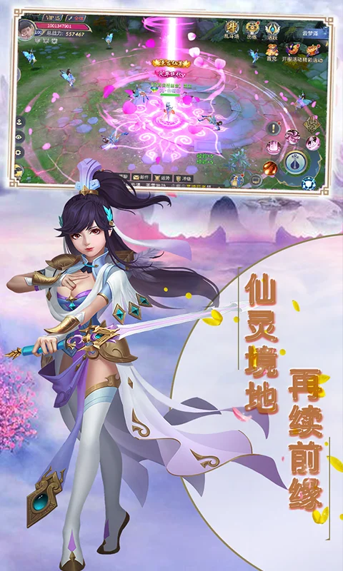 《梦回仙灵》大型唯美修仙结缘3DMMO手游,游戏中有风光璇旎的大好河山,可以和仙侣共渡浪漫之地,也有危机四伏的多人副本,既有仙盟热血激战的刺激玩法,也有萌宠猛兽逗笑坐骑陪你通关过图,跨服竞技,瑰丽视觉特效,华丽羽翼、上古神兵、多种多样的法宝系统伴你一路同行遨游修仙天地!