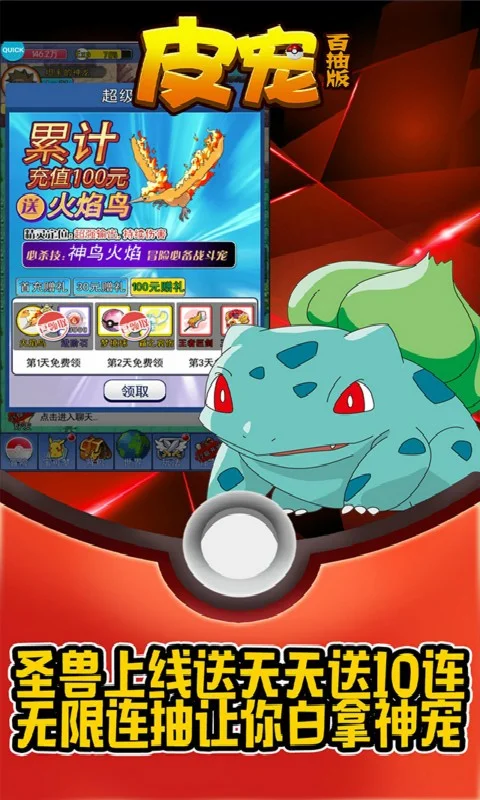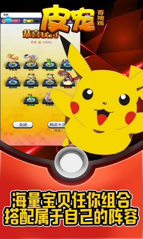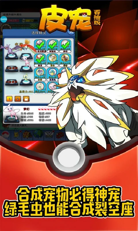 《皮宠百抽版》是一款收集养成为核心玩法的放置挂机类卡牌手机游戏。完美再现童年Q萌精灵!精美日漫画风,100%还原童年口袋世界。精灵专属必杀动画,瞬间点燃你的竞技之魂。野外挑战,捕捉强力萌宠。阵容组建,展现最强实力!游戏玩家可自由收集上百种具有不同形象及技能特点的英雄人物,通过对这些英雄高自由度的合成及对各精灵间高策略的排兵布阵,使队伍成为游戏中超强的团队。