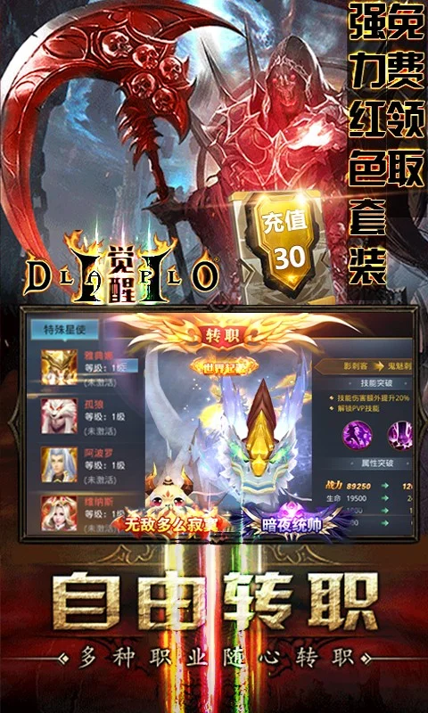 《暗黑觉醒》传承魔幻情怀,以欧美魔幻特色为基调,采用顶级3D粒子光晕特效,流畅的骨骼动态建模,专属的职业外观系统,霸气逼人。浓烈唯美的魔幻宏大场景,酷炫的战斗招式,激动人心大型GVG玩法,以及各种呆萌的宠物、拉风的坐骑、炫酷夺目的翅膀,相信会给你带来惊艳的游戏体验。