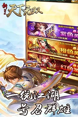 《新天下无双低价版》是一款武侠为背景的2D卡牌策略游戏,完美的展现出江湖纷争和快意恩仇,为您呈现王朝末年的烽火硝烟和乱世之中的儿女情长。多样的玩法,丰富的系统,让你亲身体验从一个寂寂无名的江湖小虾米到人人拜服的武林大侠的逆袭之路,更能一统江湖,号召群雄,保卫山河,抗击外敌,获得上阵杀敌,为国而战的快感,享受斩获军功,荣誉加身的成就。