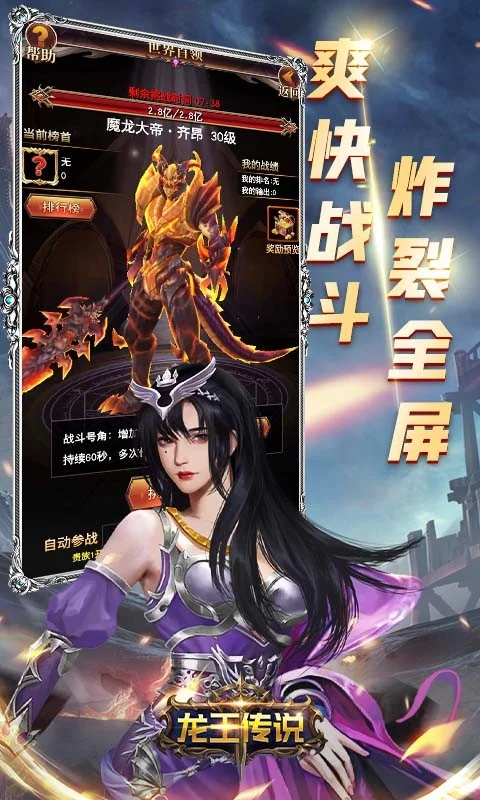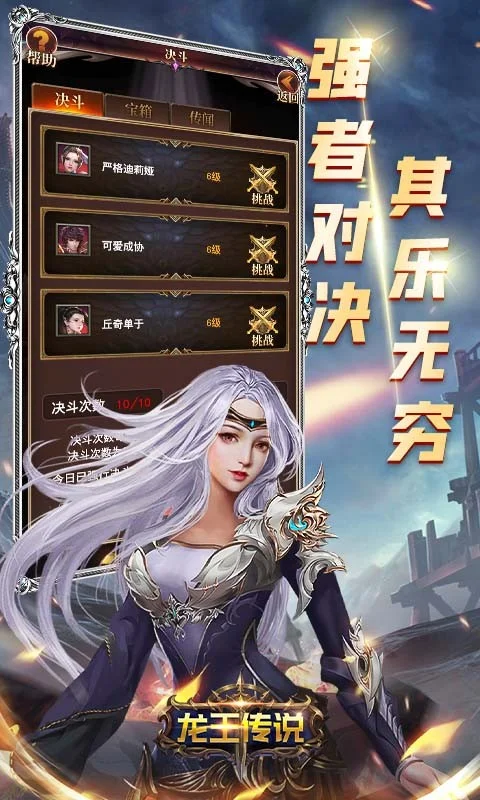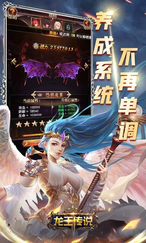 《龙王传说》是一款大型西方魔幻题材角色扮演手游,游戏以恢弘的地图场景、精致的人物角色,西方经典的魔幻题材为基础,全面构筑起史诗般西方魔幻世界。 故事背景发生在一片魔物与人类和天使共存的魔幻大陆,百年来,人类的领土不断的被魔物所侵蚀,为了维护人类阵营的繁荣和稳定,抵抗魔物的入侵,人类中的三大协会(战士、魔法师、游侠)派出了各自的精锐战士前往沦陷的故土,探寻魔物的源头,解救仍处在苦痛中的幸存者。 玩家在游戏中将要扮演协会中的强者,拥有着最接近天使之名的勇士。玩家可以在战士、魔法师、游侠三个职业中选择具体的职业进行游戏。并伴随着游戏进程的发展,一步步的提高自身战力,最终迈向魔物现世的源头,能否彻底解决魔物的威胁,还人类以安宁,这一切的一切将掌握在玩家的手里……