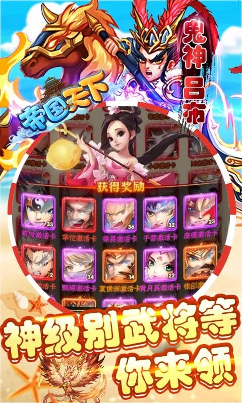 《帝国天下GM无限送充》每日在线领无门槛充值卡、连抽招募券。创角即送各类平台礼包.游戏内自动发放邮件领取!GM商店每天可领1000元以上无门槛充值卡!每个区服开服首日均有元宝转盘开启,最高可获得1000元无门槛充值卡!招募武将也白送钱,轻松获得百元以上无门槛充值卡! 游戏里到处都送钱,你还在等什么? 2秒下载,2秒安装,想得再多不如进服玩一玩,真福利,真三国,三国乱世等您主宰!