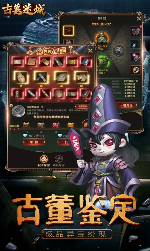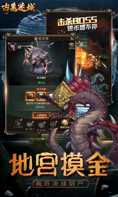 《古墓迷城》是一款以盗墓探宝为主题的RPG游戏。采用了暗黑地图与惊险的剧情结合,玩家将扮演摸金校尉探寻精绝古城、高山雪原等地,在探墓中体验不同玩法,分金定穴、点烛探宝、机关解谜、古董收集,手握金符,探险古墓世界!