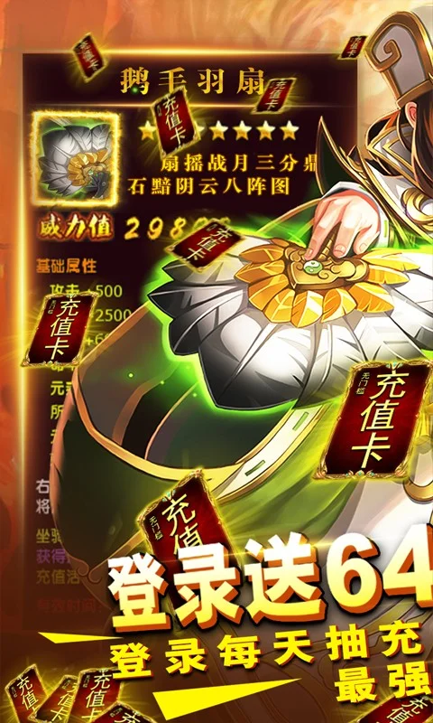 《你来嘛英雄-送648充值》年度最强三国卡牌强势来袭!上线直接送满V,特权全部免费获得,激活码领取送超强红将,还送88888钻石与10000000金币,好游戏怎能不够尽兴?不仅如此,为感谢新老玩家对本游戏的支持,策划特意设计了!!!免费转盘!!!最高可抽328充值卡,是欧皇是非酋尽管来试!本游戏是一款具有极致动作战斗体验的三国3D动作卡牌手游。这款游戏摆脱了传统卡牌模式的束缚,将卡牌与动作完美结合,手动操作实时对战,在这里你可以坐拥三国美人,驱策超级名将,改写三国历史,让你体验一个不一样的三国乱世。同时,你也将也将体验到每一个三国英雄的不同炫酷大招,一切秒杀、PK瞬息之间的胜负变换于你的股掌之中,让你真正融身于风云三国。军团战跨服争霸,带领你的军团成员登上那至高无上的巅峰,将军团大名昭显与天下。你!就是下一个三国王者!!!