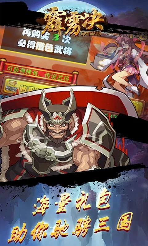 全新三国,全新演绎!游戏内上线送满V,送15000金判,送武将。开通GM权限后,在GM商店里面每天可以免费拿海量金判,顶级红色武将等等海量道具《霹雳决GM商店版》是一款以三国为题材的角色扮演类手机网络游戏。游戏采用自动回合战斗模式。在游戏中,玩家通过地图探索、副本通关、过关斩将、竞技场等玩法获取各种材料和资源,用以提升装备、获取坐骑、收集仆宠,并以此来提升自己的战斗力,最终在三国乱世中留下自己的足迹。玩家可通过最轻松的操作就能体验到智慧策略玩法、双技能自由战斗、多角色养成和搞笑幽默的三国故事等内容。清新呆萌的画风,爆笑穿越的剧情
