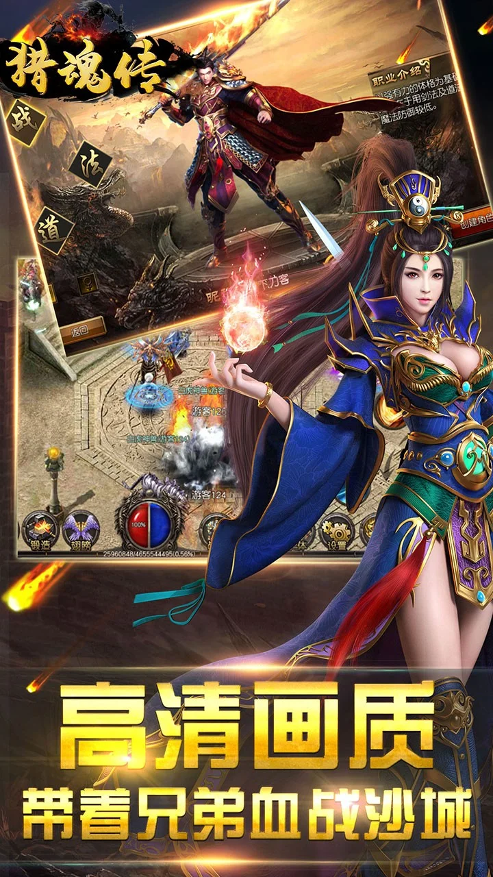 一款大型角色扮演手游,游戏的画面延续了传奇的画风,充满了热血复古的气息,画面华丽精致,在人物的形象设计非常用心,刻画了众多精美的英雄人物。