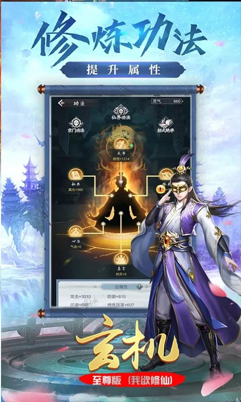 游戏上线送v15,无限商城直接元宝购买海量道具,元宝换充值卡,直接领取充值奖励《玄机至尊版挂机修仙》是一款以西游为题材,招募三界仙神养成为核心玩法的RPG手游。玩家扮演秩序重塑者,收服各路伙伴,一路斩妖除魔,修行七十二变,成为统领三界的新一代霸主。更有群仙比武,封神榜,大闹天宫,三界战场,海量仙盟玩法等你来战!全新无限福利,真实充值券、元宝、金币、十连抽券、万能碎片每日无限免费赠送!