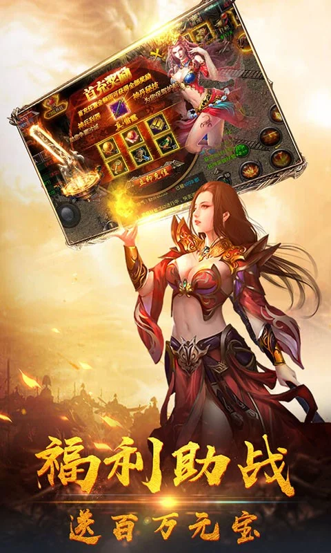 福利领不停。刀刀光柱,爆率提升,神装满地,好玩又不贵,活动多样,赞助积分全部可爆,免费福利野外夺宝,pk爽,随时攻城,唤起你的热血岁月,重现你的峥嵘青春!