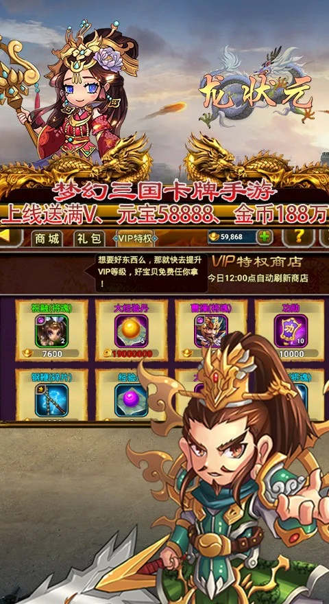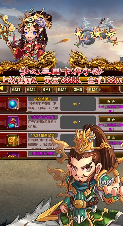 《龙状元》是一款三国题材卡牌手游,充值50元即可开启GM商城2,获取无限元宝。精彩绝伦的战斗模式,热血沸腾的万人国战,让人欲罢不能!群雄兵戎战场见,万人攻城美名留!承袭三国辉煌,成就王者雄风!携名将一统天下,就待你我!
