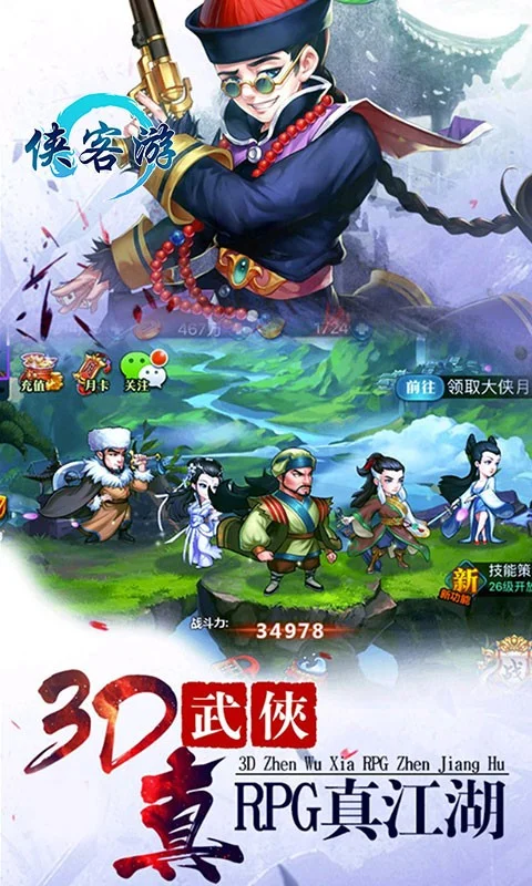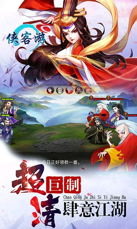 《侠客游》是一款集闯关、养成、策略、奇遇、对战等多种玩法于一身,满足玩家对武侠世界向往的精品RPG武侠卡牌手游。 您将在游戏中扮演一位盖世豪侠,邂逅江湖各路群豪,修习各派武学神功,携神兵行走江湖,酒馆相聚知遇天下英豪;挑战南峰北窟,收集真气突破经脉;关外激战,宝箱遍地资源无限;摩诃悟道,策略至上趣味无穷;武林大会群豪争霸,巅峰对决一战成名;帮派玩法,告别江湖孤寂,更有伙伴助阵玩法助你战力飙升。群侠时代自此开始,你的江湖,你的世界。