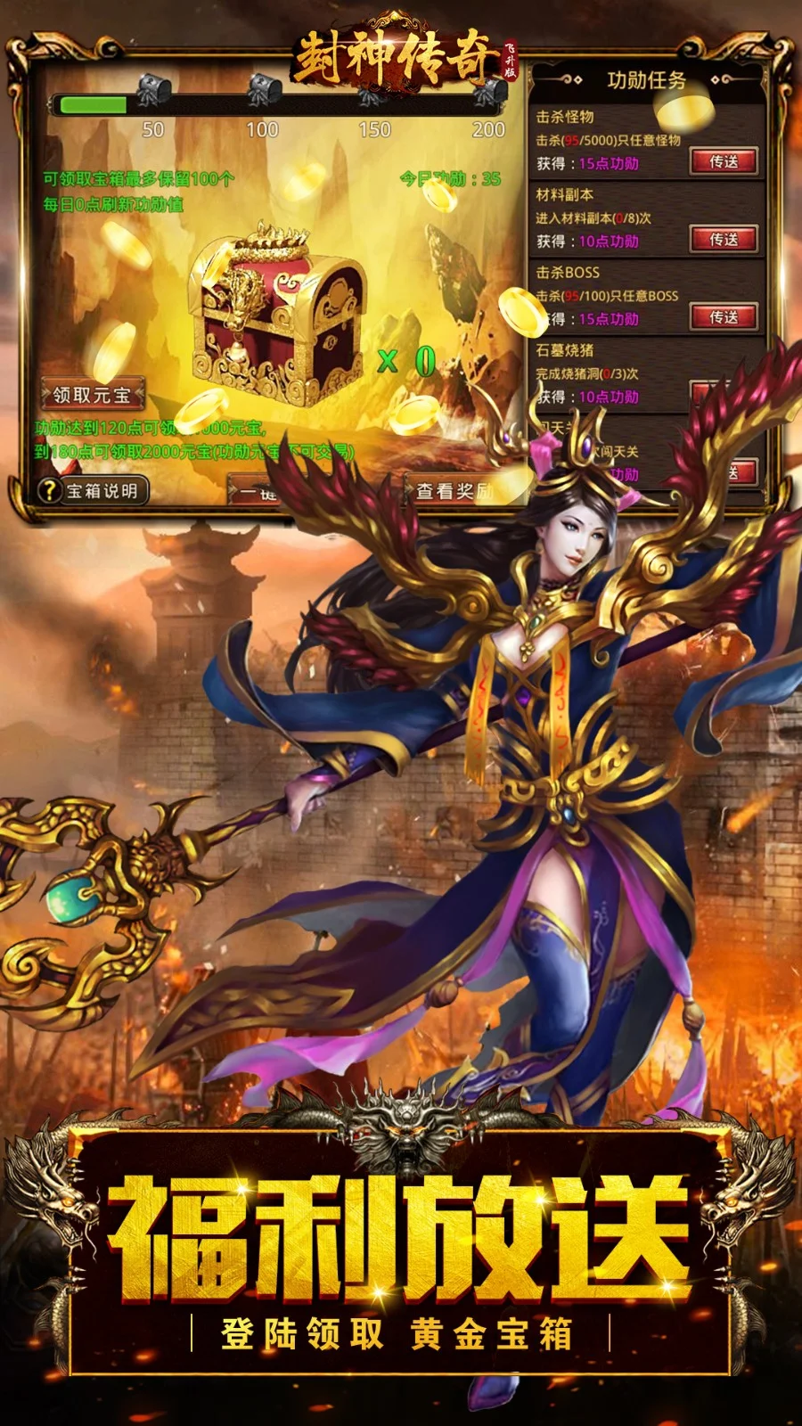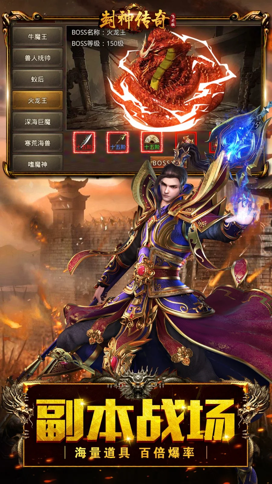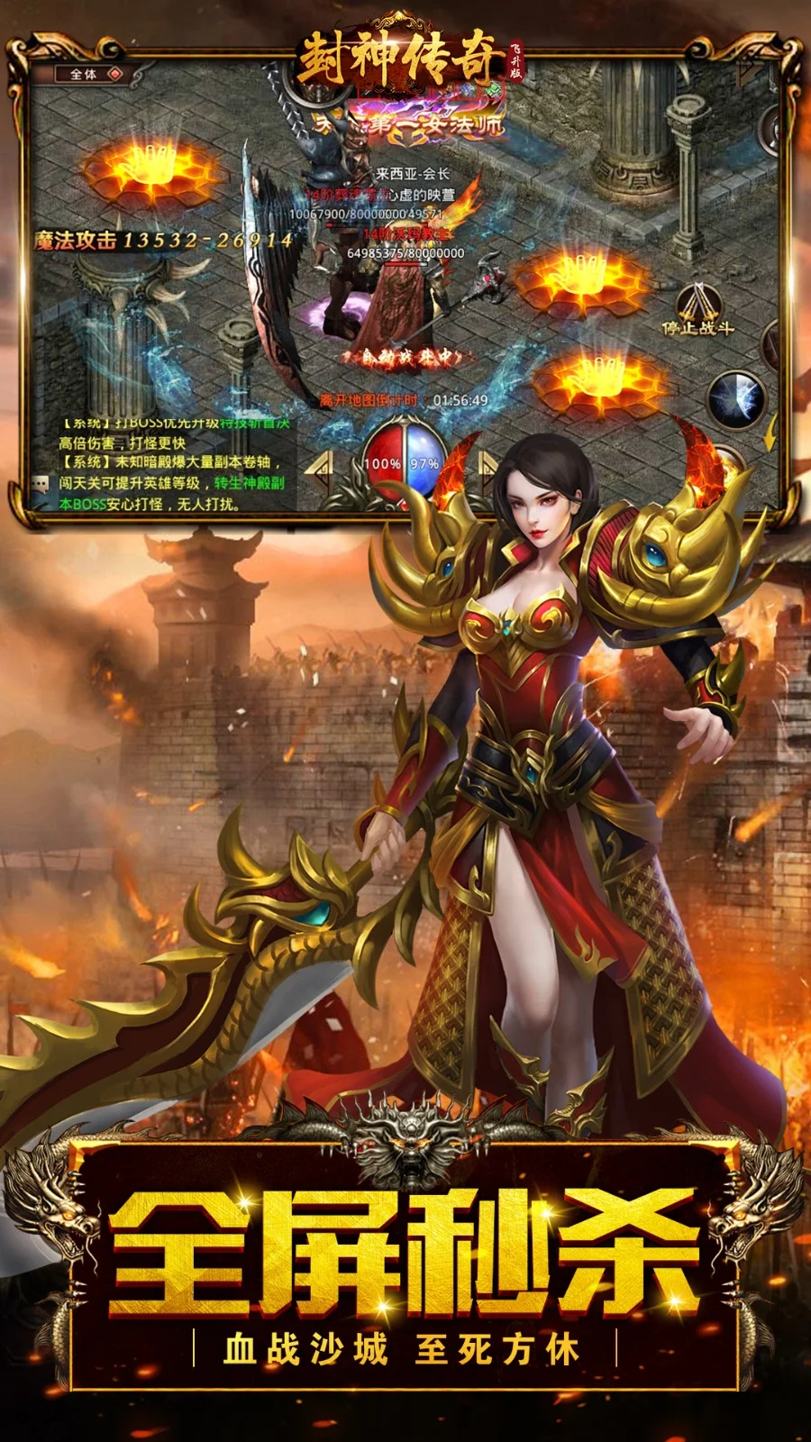 《封神传奇》经典重燃,火热来袭!传承经典传奇三职业,战、道、法,配合英雄合击 ,合击大招瞬杀BOSS!全屏多人PVP即时战斗,提刀就砍!万人攻沙实时语音互动,带来最真实最有代入感的探索与战斗体验,热血与兄弟并存,重现沙城巅峰岁月,传奇不死,情义不散!是兄弟就一起来《封神传奇》 ,尽情挥洒友情岁月!