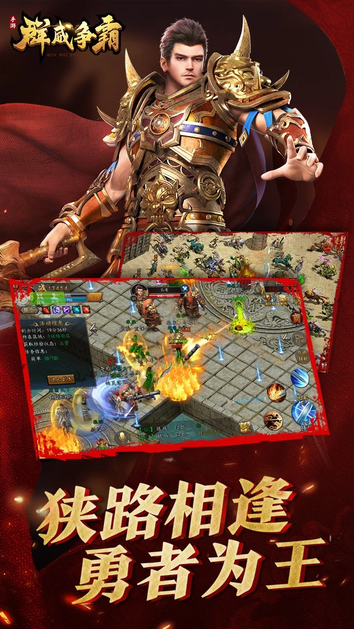 《群威争霸》是一款“装备靠打+升级靠挂”全新传奇模式游戏,花钱砸装备的时代已终结,让玩家们找到当年痛快刷装备的快感。无论在战法道三大传统职业、各职业专属炫酷技能,还是在游戏玩法、操作界面上,都原汁原味呈现了经典传奇风格。一键合击,畅爽PK。杀人爆装,多人同屏! 兄弟百人,同仇敌忾!