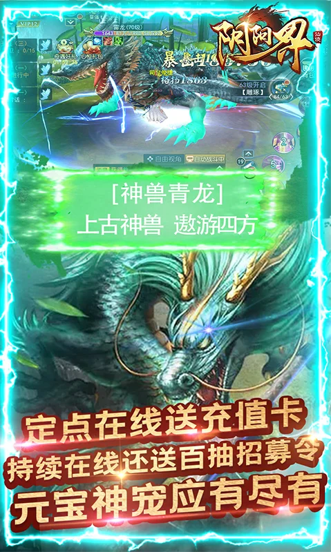 全新独家版本上线,登录就送VIP10,绑元20w,银币500w,解锁邮件系统后,还可以领取绝版称号“情牵两界”,超千元充值卡!持续登录赠送绝版法宝七宝琉璃塔!绝版翅膀冥狱攫魂!还有绝版坐骑镇海圣兽!此外还有战宠神技、高级神装不容错过!参与七日修炼活动领取绝版神宠熊猫“胖宝”,免费活动任君领取!此外还有定点在线送充值卡,持续在线送百抽招募令,让你元宝想花就花,神宠应有尽有!