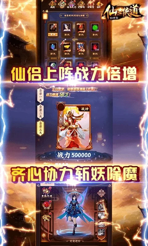 创角就送VIP10再送3W真元宝,天天登录天天送顶级红装等你凑,七日活动送红色套装还有绝版神武“炼狱”等你拿! 《仙之侠道》中再现恢弘的仙侠世界:混沌初开,太初鸿蒙,金庭玉柱,仙禽走兽;极于情者极于剑,一生一世一心人;多策略的养成系统,提供多种成长途径,让你打造有个性的独特英雄;3D引擎展现极致精美画面,华丽特效给你爽快战斗打击感!与全球各地的玩家进行对战,门派系统助你争雄环宇,属性克制实现越级挑战,修身炼穴方成一世传说,神兵在手纵横八荒六合。独特3D视角、清晰明了的游戏操作,迅速吸引了广大仙侠迷以及众多忠实粉丝。