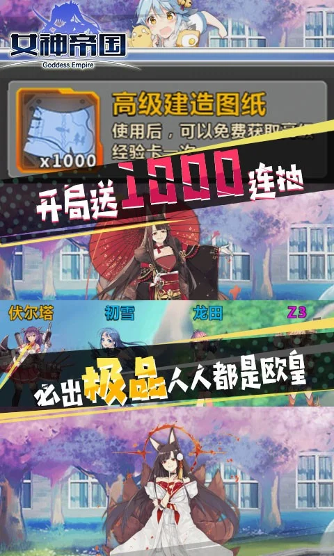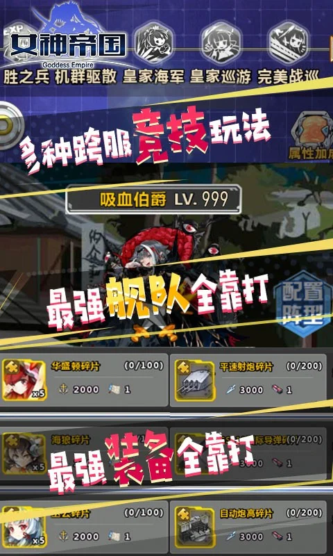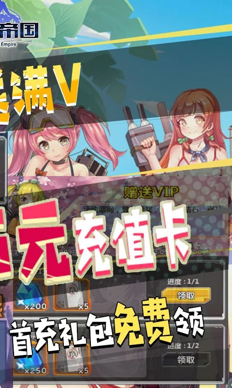 《女神帝国送2696充值》新建角色即送648元+2048元充值卡(直接存入背包),648元充值卡1级即可使用,2048元充值卡升级至150级即可随意使用。完美激活游戏内所有充值活动,金色战舰,首充礼包全都可以免费领取!不花一分钱就能好玩的舰娘游戏! 游戏以第二次世界大战时期的日本帝国海军军舰为题材。玩家可以在游戏内一边收集军舰拟人化的角色“舰娘”,一边将已经收集到的舰娘强化并改造,最后在战斗中打倒深海舰队,成就无敌的联合舰队。战舰升阶还能开启变身模式!