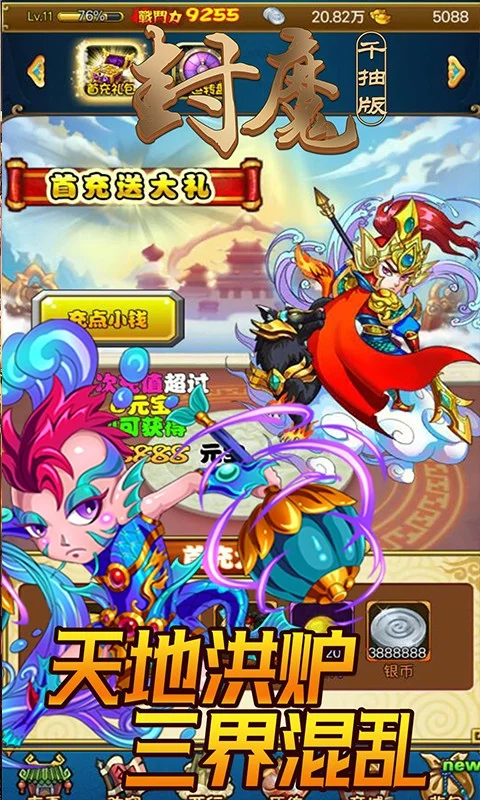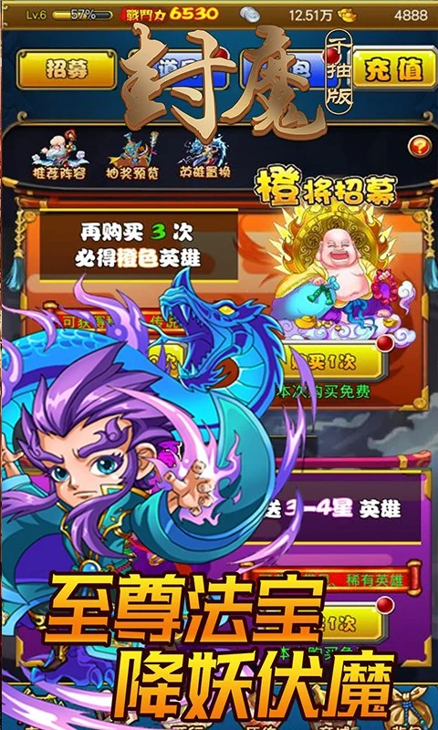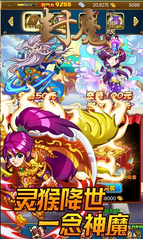 《封魔千抽版》是一款西游题材卡牌手游!多样玩法,助你热血闯三界:合战世界boss、勇闯地府、仙境冒险、蟠桃园、锁妖塔、巅峰竞技等精彩活动带你玩转西游。一棍扫全军,千劫欲降妖。重温西游经典,等你来屠魔。勇闯九九难关,尽灭魔神鬼怪,问天以道,修炼成圣!