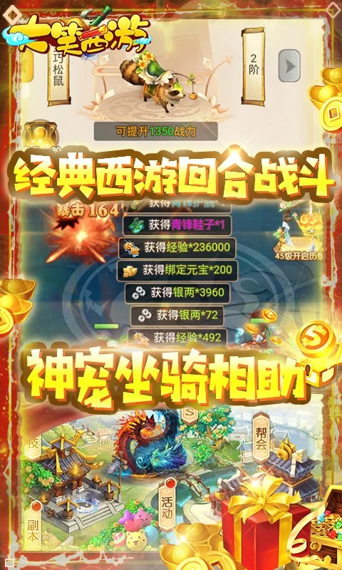 《大笑西游》是一款角色扮演类游戏。精妙绝伦的美术让战斗场面栩栩如生。逼真的场景和人物、伙伴的刻画,能清晰看到人物、伙伴的细微动作。加上合理的布局、界面版式设计,让玩家的操控舒适和贴心。玩家可以通过主角自身的打怪来提升自己的实力,也可以去抓捕更强大的伙伴来提升自己的战斗水平,玩家会遇到追随自己的美丽仙君和天女。玩家还可以通过翅膀、坐骑、时装、称号等系统更换自己的外显,彰显自己的个性化外观,和其他玩家组成队伍,建立帮会,和更强大、更多数量的敌人进行团队战斗。快来一起缔造属于你的西游传奇吧!
