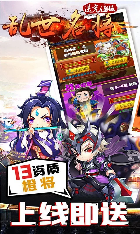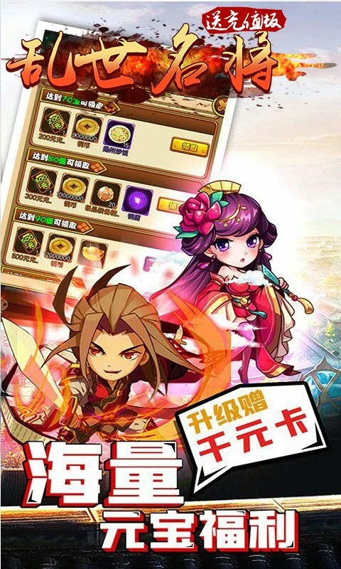 上线送满v,挂机轻松拿各种资源,gm权限自己领取海量道具和神将,升级更可以拿千元充值卡。《乱世名将送充值版》是一款全新三国题材手游,乱世中,玩家可扮演主公的角色,招募三国时期的各种名将,来实现三国统一的梦想。游戏拥有招募武将、天命、阵将,来实现三国统一的梦想。游戏拥有招募武将、天命、阵法、真气等战斗培养元素,还引入竞技场、跨服竞赛、跨服巅峰等PVP玩法。