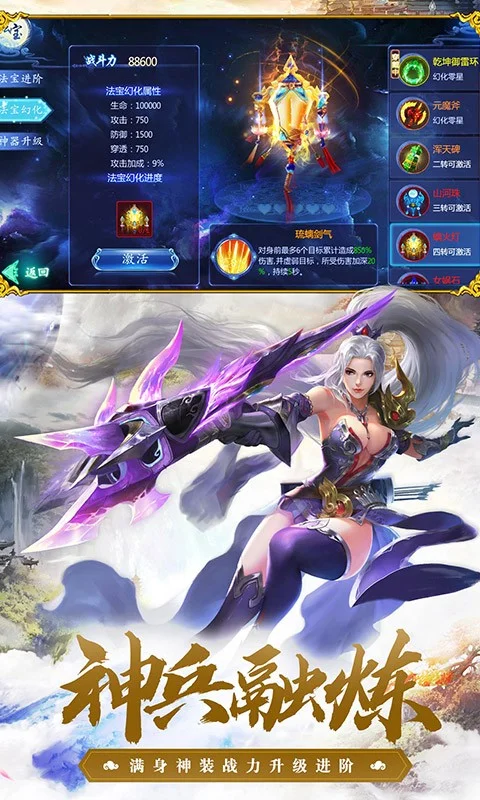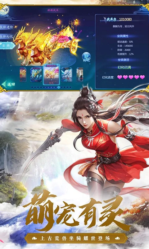 唯美画面品质,细腻画风精致人物 极致精美的画面,飘逸绝尘的画风,穹顶雪域、地底迷城、熔岩密窟,融合多种元素,风格各异,给您不一样的视觉体验! 独特养成系统,提升战力一键修仙 独特且庞大的养成系统。神兵修炼、伙伴培养、坐骑升阶、装备合成等众多养成玩法,让你置身于仙侠世界,体验成仙的快感。 华丽技能特效,热血激战超爽体验 在PK战斗、动作效果等设计上,人物技能组合,配合逼真的打斗动作,玩家将身临其境地体验到爽快的动作打击感。 浪漫唯美剧情,乱世姻缘携手相伴 结婚交友等系统全新上线,告别孤单游戏。仙缘、仙盟、好友、跨服多元社交,送花办婚礼,夫妻双双来修仙。