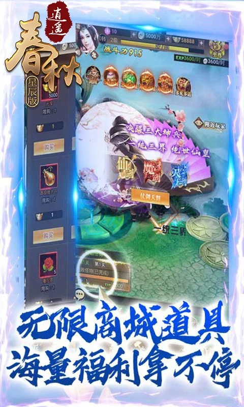 上线送满v,送88888元宝、送充值卡《逍遥春秋星辰版送充值卡》是一款以畅快战斗为核心的RPG仙魔手游,游戏以细致的地图场景、精致的人物角色基础,全面构筑起史诗般东方魔幻世界。高清画质 ,精美模型;多样副本,奖励丰厚;神兽降临 ,法宝问世;跨服玩,称霸大陆!全民参战冲击你的血液,开放战斗满足你的激情!