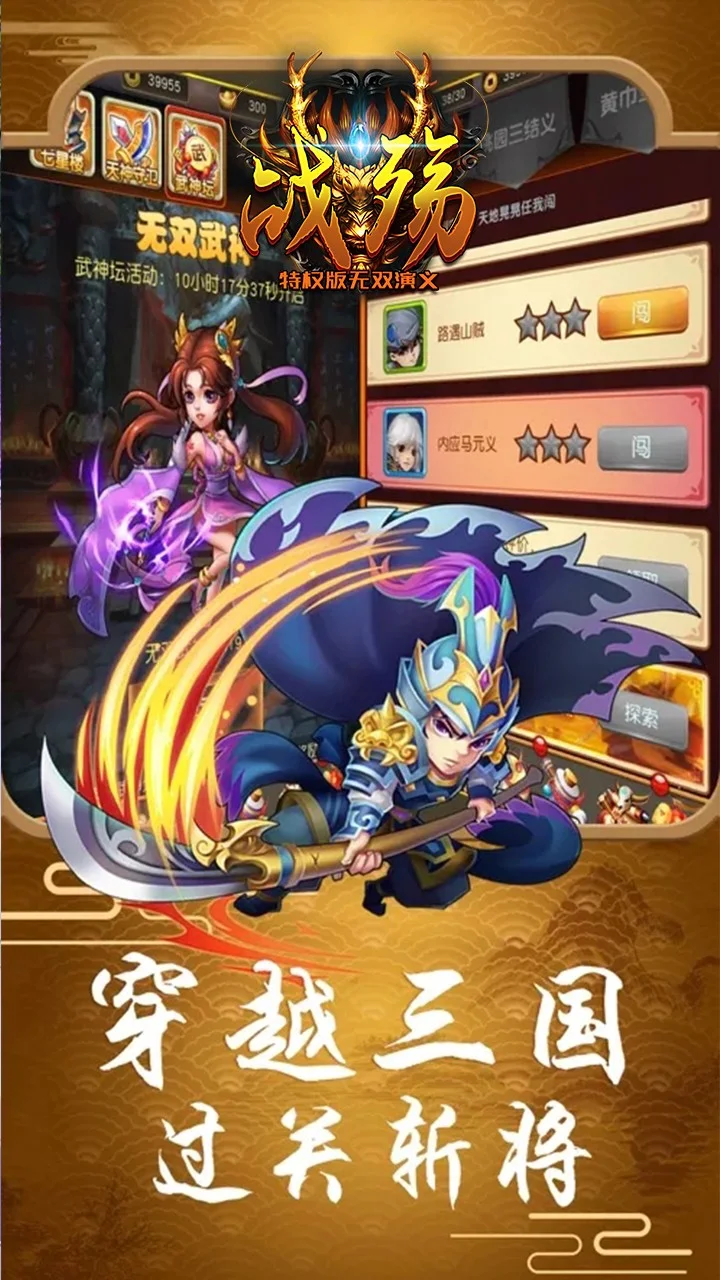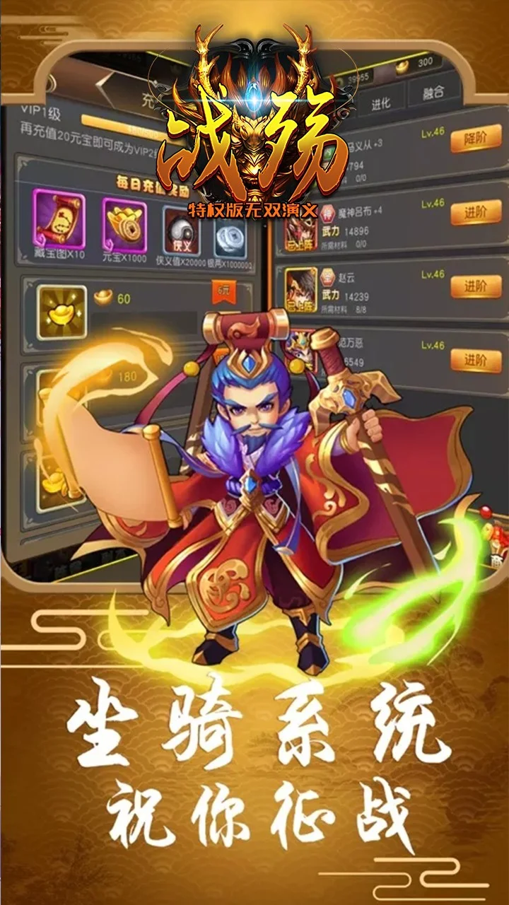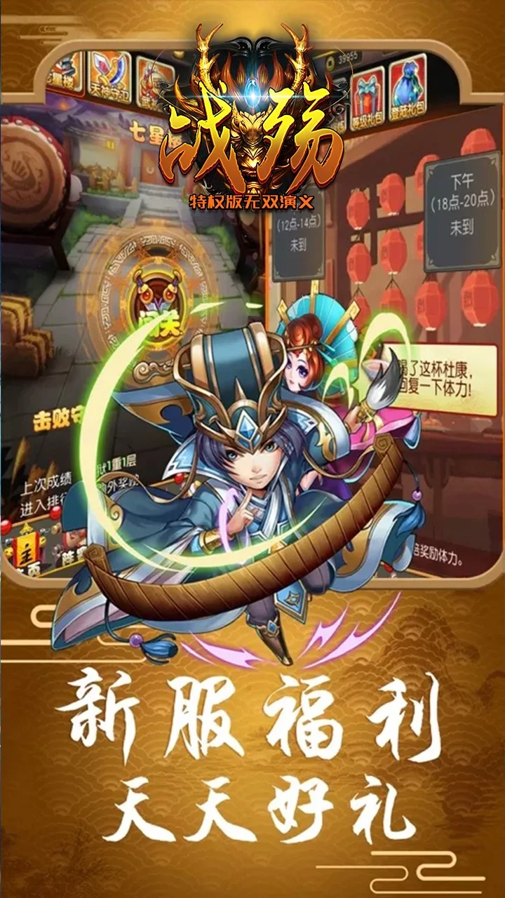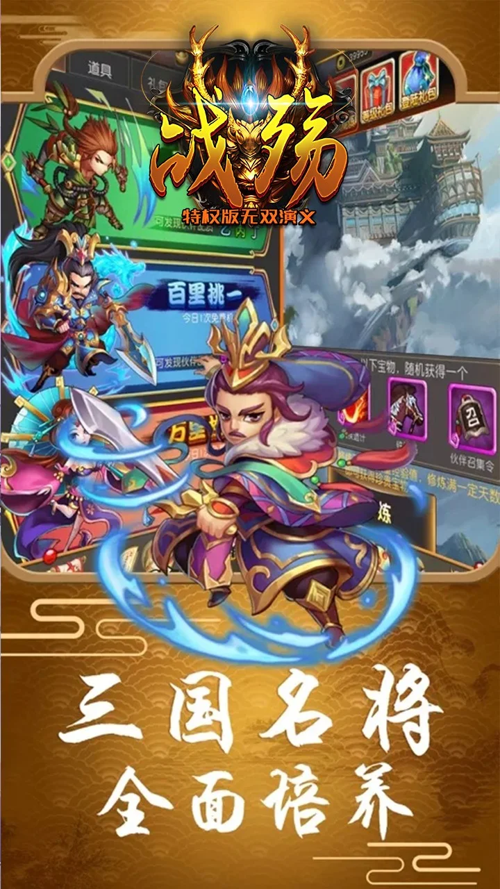 《战殇特权版无双演义》是一款以中国古典名著《三国演义》为背景,讲述在三国的乱世中,玩家可扮演主公的角色,招募三国时期的各种名将,来实现三国统一的梦想。游戏拥有各种战斗培养元素,还引入竞技场、跨服竞赛、跨服巅峰等PVP玩法。上线就送百连抽,游戏各种福利赠送连抽奖励,简单来说,就是抽到“爽”!!!