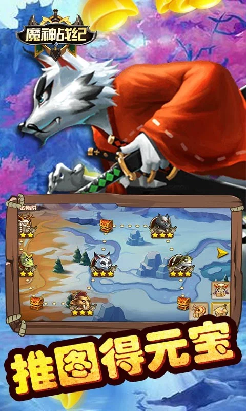 魔神战纪手游打造了一款国风动物卡通大乱斗,游戏中以动物为原型、功夫为主题、力求国内顶尖的美术品质、精细的动作设计、丰富的游戏玩法,打造出一个拥有数十位性格迥异、背景莫测的功夫大师以及千万种战斗组合的功夫世界。游戏福利爽到不行,登录就送全GM商城,全场珍稀道具均1元宝!创角既得白银卡、双橙将,连登还送顶级红将、顶级红装!1:1000高比例,首次即得3倍元宝!上线自动满VIP,更有保底福利元宝88888、银两3888888、翡翠3888888助你飞速成长!