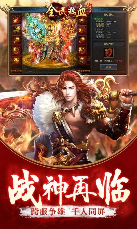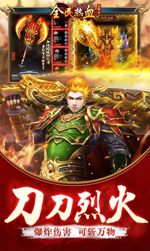 《全民热血》是一款3D单职业传奇手游。上线送VIP直升卡、999999金币 99999绑元,VIP超级福利免费拿,赢在起跑线!船新版本,幻兵幻甲免费拿,无限切割,刀刀斩杀,千倍爆率,秒杀boss不是梦!无限制的掉落设定,让每一个玩家都有机会获得顶级装备。丰富的隐藏地图和BOSS资源待玩家探寻。游戏不但还原了传奇的经典元素,更融入了一系列的创新玩法。让玩家一边回味经典,一边探索新奇。