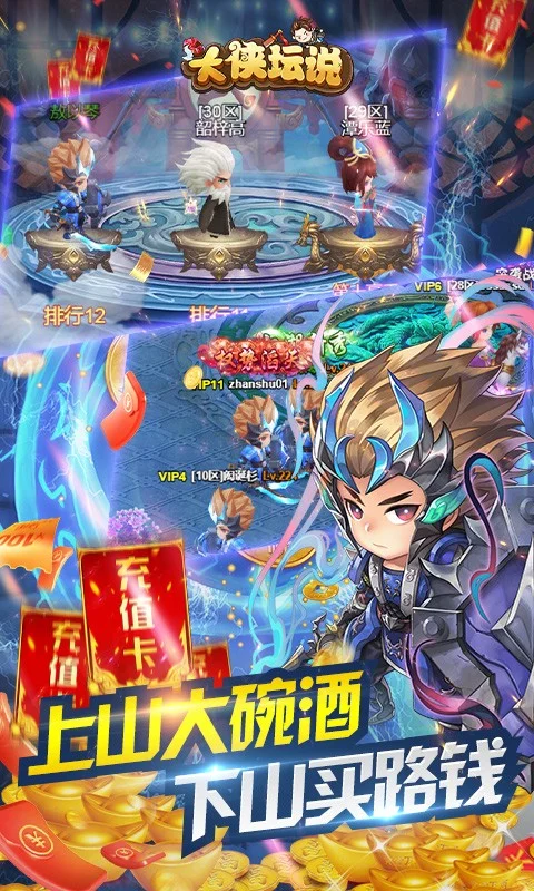 《大侠坛说》是一款Q萌魔幻RPG类型的游戏。将中国四大名著水浒英雄元素融入江湖武侠题材,搞笑可爱中不乏战斗的爽快感。游戏首创H5战术系统玩法,搭配6大职业相生相克,阵型站位,玩法千变万化;游戏人设是聘用韩国高级画师参与设计,所以能看出一些日韩绘制画风;游戏内系统多达80多个,堪比手机游戏内容,光是玩法类型就多达20种,各种单人、多人PVE,PVE,帮派对抗,冒险生存等等玩法;Q萌风格融化少女心扉,江湖热血成就男儿侠梦!生活如此多娇,你又何必低调,大侠坛说等你来战!